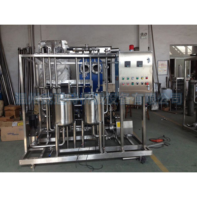 果汁飲料板式滅菌設備的產品組成及特點:滅菌機由板式滅菌器、物料泵、熱水泵、平衡罐、自控儀表、管道和閥門等組成的撬裝機組。