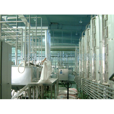 經過上步處理后的果漿為了增加風味需進行調整。調整時加入砂糖、檸檬酸和L-抗壞血酸等配料。其比例為桃肉漿100公斤,27%糖液80公斤、檸檬酸0.45