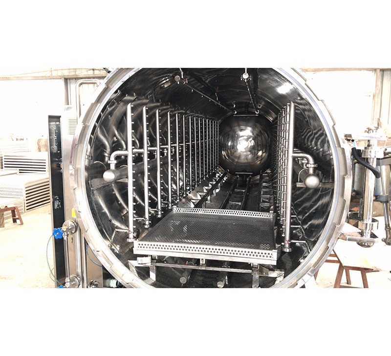該設(shè)備由鍋體、鍋蓋、開(kāi)啟裝置、鎖緊模塊、安全聯(lián)鎖裝置、軌道、滅菌框、蒸汽噴管及若干管口等組成、鍋蓋密封采用充氣式硅膠耐溫密封圈,密封可靠,使用壽命長(zhǎng)。具有受熱面積大,熱效率高、加熱均勻、液料沸騰時(shí)間短、加熱溫度容易控制等特點(diǎn)、殺菌鍋主要用于食品行業(yè)、醫(yī)藥等各領(lǐng)域。